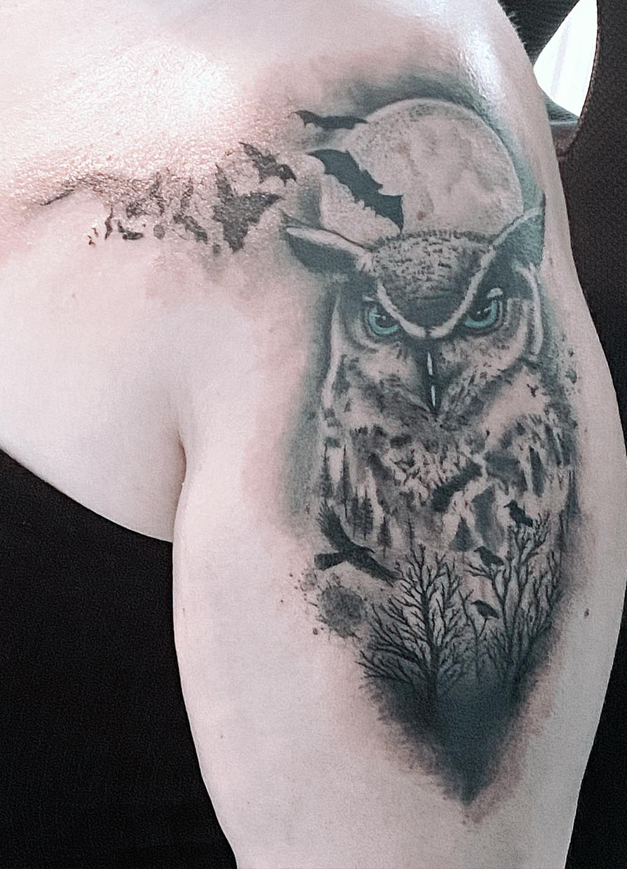 Ich tätowiere seit 2020. Schwarz-Weiß Realismus tätowiere ich am Liebsten, da es meiner Arbeitsweise in Photoshop am Nächsten kommt.